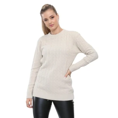 STAR FASHION Ladies Round Neck Knitted Long Sleeve Super Soft Knit All Over Cable Jumper Womens Casual Pullover Cosy Baggy Winter Top Sweater Stone 8 10