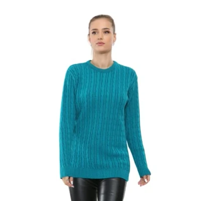 STAR FASHION Ladies Round Neck Knitted Long Sleeve Super Soft Knit All Over Cable Jumper Womens Casual Pullover Cosy Baggy Winter Top Sweater Turquoise 16 18
