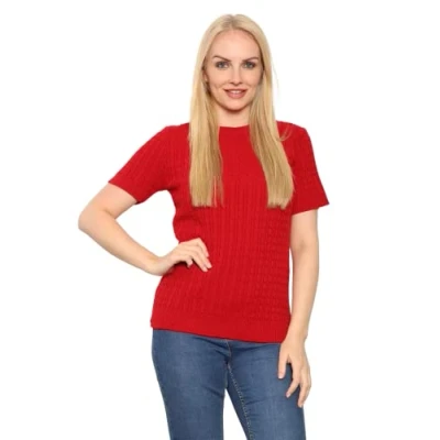 STAR FASHION Ladies Round Neck Knitted Short Sleeve Super Soft Knit All Over Cable Jumper Womens Casual Pullover Cosy Baggy Winter Top Sweater UK Size 8 to 22 (Red)