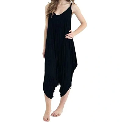 STAR FASHION Ladies Strappy Baggy Harem Jumpsuit Romper Dress Top Womens Sleeveless All in One V Neck Cami Playsuit UK Black 12 14