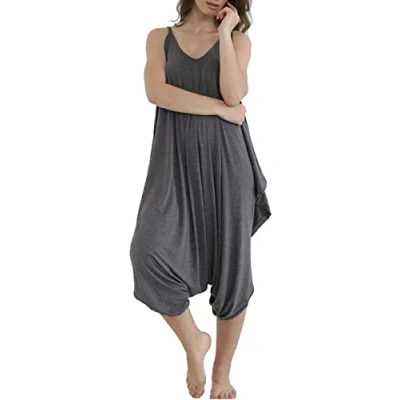 STAR FASHION Ladies Strappy Baggy Harem Jumpsuit Romper Dress Top Womens Sleeveless All in One V Neck Cami Playsuit UK Charcoal 8 10