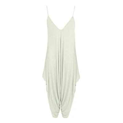 All-in-one jumpsuit, romper, dress top, and playsuit. Comfortable fit with baggy harem style and V-neck cami. Wide range of sizes from UK 8 to 26 for all body types. Available in various plain and printed options. Perfect for dressing up or down with easy styling options.
