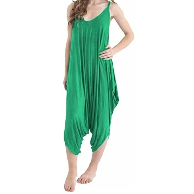 STAR FASHION Ladies Strappy Baggy Harem Jumpsuit Romper Dress Top Womens Sleeveless All in One V Neck Cami Playsuit UK Green 20 22