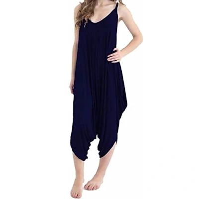 STAR FASHION Ladies Strappy Baggy Harem Jumpsuit Romper Dress Top Womens Sleeveless All in One V Neck Cami Playsuit UK Navy Blue 12 14