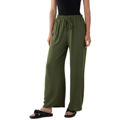 STAR FASHION Ladies Summer Viscose Trousers for Women Drawstring Crepe Trouser Pants Khaki 16 18