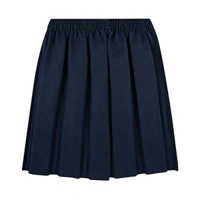 STAR FASHION New Kid's Girl’s All Round Elasticated Waist School Uniform Plain Skirt Box Pleated Dress Schoolwear Flowy Skirts Navy 9 10 Year
