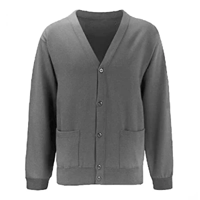 STAR FASHION New Kids Unisex School Fleece Button Cardigans for Girls/Boys Uniform Long Sleeve Buttons up Sweater Formal Plain V Neck Open Front Pockets Kid’s Cardigan Ages 2 14 Years Grey