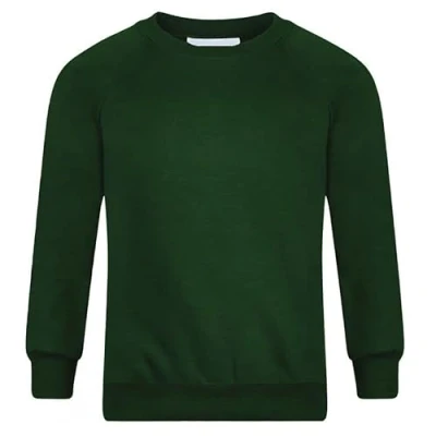 STAR FASHION New Kids Unisex School Uniform Jumper for Girls/Boys Long Sleeve Solid Style Crew Round Neck Sweatshirt Kid’s Sweater Ages 2 14 Years Bottle Green
