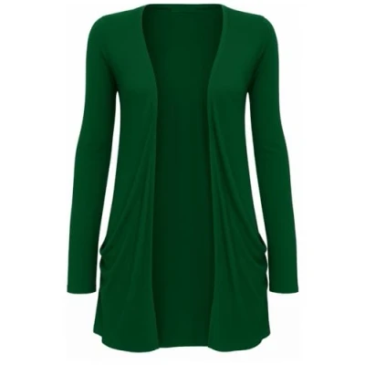 STAR FASHION New Ladies Open Front Boyfriend Cardigan Women Plain Long Sleeves Pocket Stretch Top Bottle Green 16 18