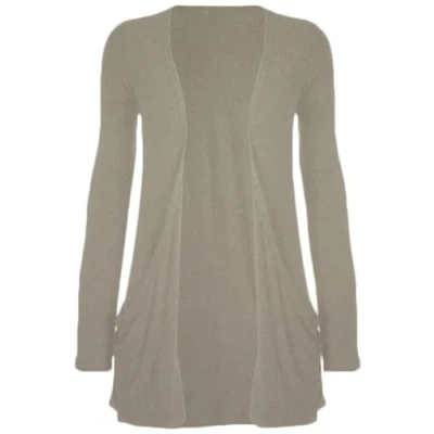 STAR FASHION New Ladies Open Front Boyfriend Cardigan Women Plain Long Sleeves Pocket Stretch Top Grey 12 14