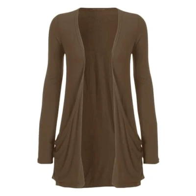 STAR FASHION New Ladies Open Front Boyfriend Cardigan Women Plain Long Sleeves Pocket Stretch Top Mocha 24 26