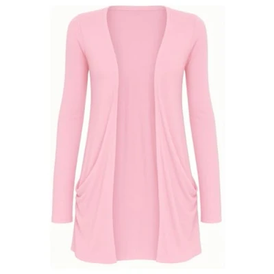STAR FASHION New Ladies Open Front Boyfriend Cardigan Women Plain Long Sleeves Pocket Stretch Top Pink 20 22