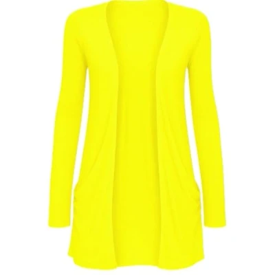 STAR FASHION New Ladies Open Front Boyfriend Cardigan Women Plain Long Sleeves Pocket Stretch Top Yellow 20 22