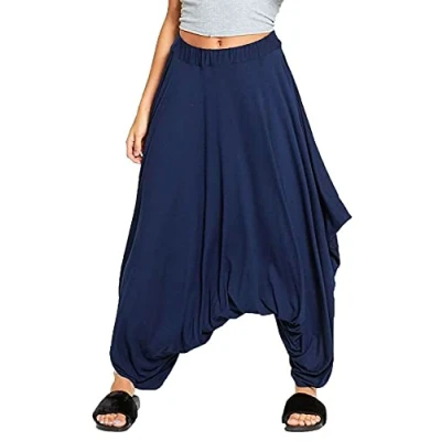 STAR FASHION Women Lagenlook Alibaba Gathered Draped Baggy Harem Pants Trousers. This Loose Baggy Fit Elasticated Ladies Trouser is made from high quality soft fabric (95% Polyester and 5% Elastane) with exquisite comfort and pleasant to wear. TRENDY & FASHIONABLE: These Gathered Draped Baggy Pants are new in fashion and trend. Its attractive and unique look makes it the most common choice of women when it comes to everyday wear or occasional wear. FOR ALL OCCASIONS: These easy elasticated fit loose harem lagenlook plain trouser is perfect for beach pants, casual pants, boho pants, hippy pants. Excellent for summer, spring, autumn, relaxing at home, and many other occasions. ONE SIZE (16-22) : Available in one Size 16-22 that fits the most women. Approx Lenght: 36 Inches. Available in a range of colors for a perfect fashion. Choose the color carefully. 100% Satisfaction Gurantted~Return Accepted. CARE INSTRUCTION - This fabrics can be machine-washed using warm water, Tumble dry polyester garments on low heat. Remove them from the dryer while they're still slightly damp to prevent wrinkles and avoid a static build-up.