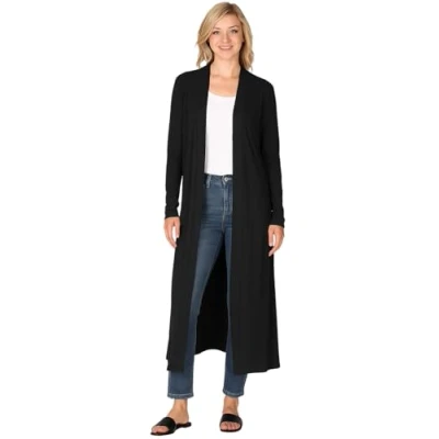 Approx Length: 48 Inches. Designed with a floaty open front and collared neckline. Soft and Stretchy Fabric Blend Made from 95% viscose and 5% elastane, the fabric is smooth, breathable and stretchy. This long sleeve cardigan features a relaxed fit with a flattering drape, offering lightweight coverage all year round. Open Front Style with Collar Featuring an open front and classic collar detail, this cardigan is ideal for layering in spring, autumn, or cooler summer evenings