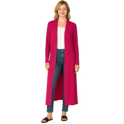 STAR FASHION New Women Long Sleeve Maxi Ladies Open Front Floaty Boyfriend Cardigan Cerise UK Size 20 22