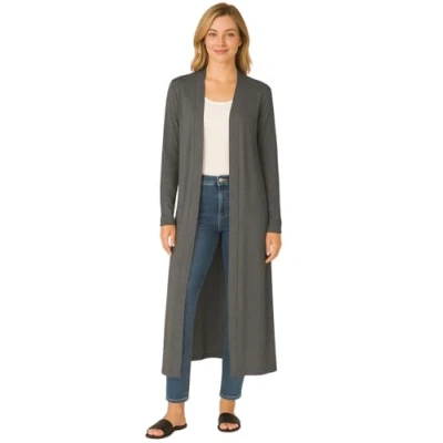 STAR FASHION New Women Long Sleeve Maxi Ladies Open Front Floaty Boyfriend Cardigan Charcoal UK Size 24 26