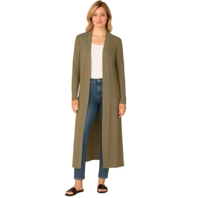 STAR FASHION New Women Long Sleeve Maxi Ladies Open Front Floaty Boyfriend Cardigan Khaki UK Size 16 18