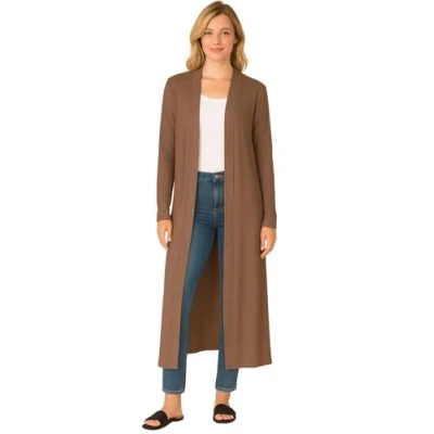 STAR FASHION New Women Long Sleeve Maxi Ladies Open Front Floaty Boyfriend Cardigan Mocha UK Size 8 10