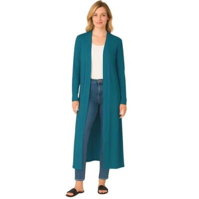 STAR FASHION New Women Long Sleeve Maxi Ladies Open Front Floaty Boyfriend Cardigan Teal UK Size 16 18