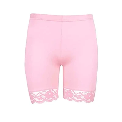 STAR FASHION New Women's Cycling Shorts Ladies Lace Trim Bike Dancing Yoga Gym Exercise Stretchy Short Baby Pink 12 14