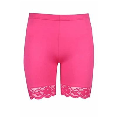 STAR FASHION New Women's Cycling Shorts Ladies Lace Trim Bike Dancing Yoga Gym Exercise Stretchy Short Fuchsia 12 14