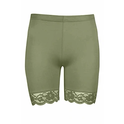 STAR FASHION New Women's Cycling Shorts Ladies Lace Trim Bike Dancing Yoga Gym Exercise Stretchy Short Khaki 12 14