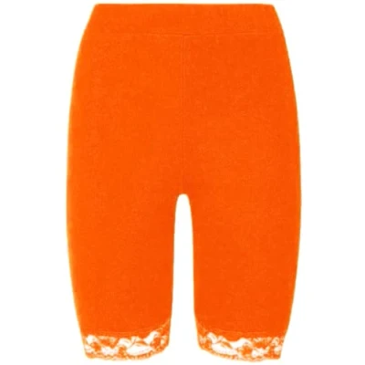STAR FASHION New Women's Cycling Shorts Ladies Lace Trim Bike Dancing Yoga Gym Exercise Stretchy Short Neon Orange 12 14
