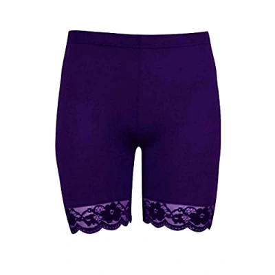 STAR FASHION New Women's Cycling Shorts Ladies Lace Trim Bike Dancing Yoga Gym Exercise Stretchy Short Purple 16 18