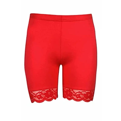 STAR FASHION New Women's Cycling Shorts Ladies Lace Trim Bike Dancing Yoga Gym Exercise Stretchy Short Red 12 14