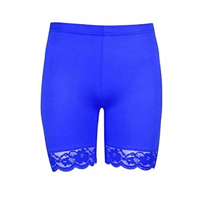 STAR FASHION New Women's Cycling Shorts Ladies Lace Trim Bike Dancing Yoga Gym Exercise Stretchy Short Royal Blue 12 14