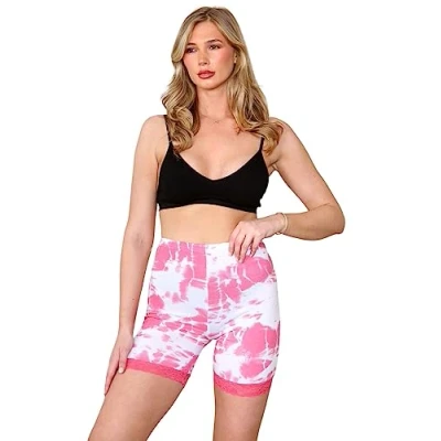 Stylish and comfortable: These shorts feature a fun tie-dye print and a lace trim for a stylish and comfortable look. Soft and stretchy: The shorts are made from a soft and stretchy fabric that moves with you, providing maximum comfort and support. Perfect for any activity: These shorts are perfect for running, biking, yoga, dancing, or any other activity. Available in a variety of sizes and colors: The shorts are available in a variety of sizes and colors to fit every woman. A great value: These shorts are a great value for the price, making them a great option for any woman looking for a stylish and comfortable pair of shorts.