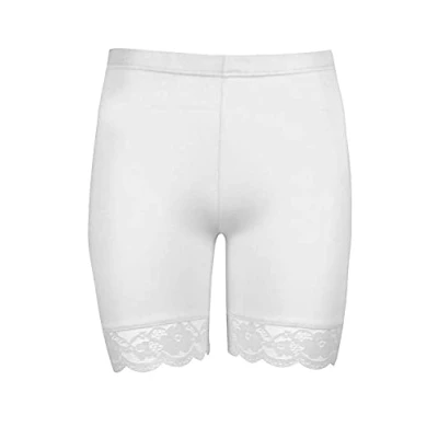 STAR FASHION New Women's Cycling Shorts Ladies Lace Trim Bike Dancing Yoga Gym Exercise Stretchy Short White 12 14