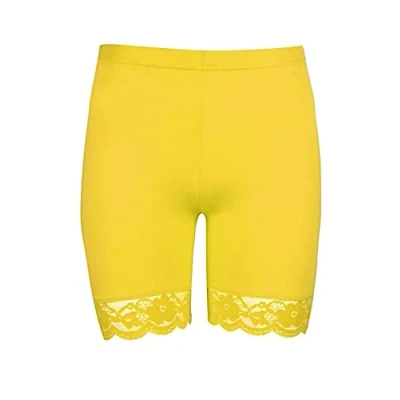 STAR FASHION New Women's Cycling Shorts Ladies Lace Trim Bike Dancing Yoga Gym Exercise Stretchy Short Yellow 12 14