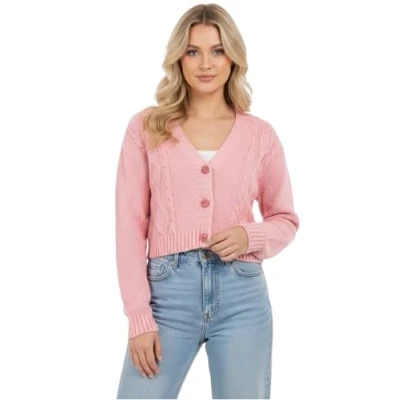 STAR FASHION New Women's Ladies Chunky Cable Knitted Cropped Cardigan Long Sleeve 3 Button Short Crop Top Warm Sweater Jacket Pary Wear UK Size 8 14 Coral