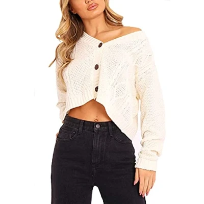 ✿PREMIUM QUALITY: New Women Ladies Cable Chunky Knitted 3 Button Cropped Cardigan, Orignal and Authentic only from STAR FASHION. Made from 100% Acrylic You will never regret regarding its quality and comfort. ✿A UNIOQUE STYLE: This Long Sleeve Cropped Wram Sweater Cardigan will give your outfit a fashionable and edgy look. Widely accepted and loved by women around the world for its modern elegant and attractive style. ✿WARM CARDIGAN: To throw over when it starts to get chilly, This cable knitted cropped jacket is made with the perfect material you don't get too hot in however works amazing to get rid of that cold Goosebumps feeling forever. ✿ULTRA COMFY: This 3 Button Crop Cardigan is Skin-Friendly, Soft And Comfortable and Breathable. Perfect For Cuddling and For Work, Club, Casual Daily Wear, Date, Office, Vacation, School Etc. Perfect In Spring, Autumn And Winter. ✿CUSTOMER SATISFACTION - If you have any questions or inquiries regarding size and fit or about your purchase, please reach out to us immediately to resolve any issues through buyer messages. Return Accepted.