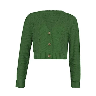 STAR FASHION New Women's Ladies Chunky Cable Knitted Cropped Cardigan Long Sleeve 3 Button Short Crop Top Warm Sweater Jacket Pary Wear UK Size 8 14 Green