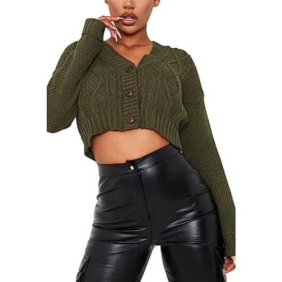 ✿PREMIUM QUALITY: New Women Ladies Cable Chunky Knitted 3 Button Cropped Cardigan, Orignal and Authentic only from STAR FASHION. Made from 100% Acrylic You will never regret regarding its quality and comfort. ✿A UNIOQUE STYLE: This Long Sleeve Cropped Wram Sweater Cardigan will give your outfit a fashionable and edgy look. Widely accepted and loved by women around the world for its modern elegant and attractive style. ✿WARM CARDIGAN: To throw over when it starts to get chilly, This cable knitted cropped jacket is made with the perfect material you don't get too hot in however works amazing to get rid of that cold Goosebumps feeling forever. ✿ULTRA COMFY: This 3 Button Crop Cardigan is Skin-Friendly, Soft And Comfortable and Breathable. Perfect For Cuddling and For Work, Club, Casual Daily Wear, Date, Office, Vacation, School Etc. Perfect In Spring, Autumn And Winter. ✿CUSTOMER SATISFACTION - If you have any questions or inquiries regarding size and fit or about your purchase, please reach out to us immediately to resolve any issues through buyer messages. Return Accepted.