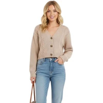 STAR FASHION New Women's Ladies Chunky Cable Knitted Cropped Cardigan Long Sleeve 3 Button Short Crop Top Warm Sweater Jacket Pary Wear UK Size 8 14 Mocha