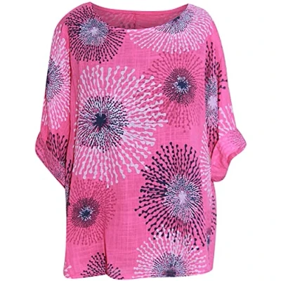 STAR Fashion New Womens Long Sleeves Italian Top Ladies Trendy Splash Print Rolled Up Casual Wear Summer Shirt One Size UK 10 to 18 Fuchsia