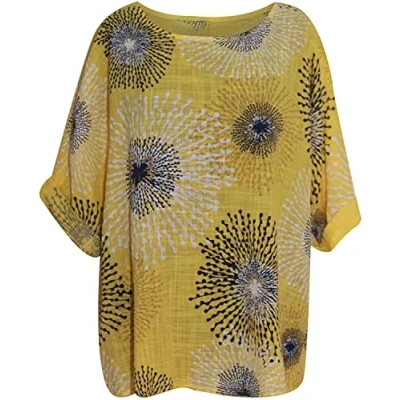 A must-have casual Italian top by Star Fashion made of high-quality, long-lasting cotton fabric. Cotton's characteristics make it very soft, comfortable, resilient, and light on the inside. Allowing you to feel at ease while maintaining a casual yet fashionable appearance. Measurements Details: Chest Pit to pit 24 inches = 61cm Length C-Back to Hem 24 inches = 61 cm perfect for uk size 10 -18 Available: These Turn Up Sleeves Italian Tops are available in a wide variety of colours Mustard, Beige, Denim, Lime Green, Khaki, Fuchsia, White, Light Blue, Orange, Nude Pink and in one size uk 10-18, 100% new and high quality . This trendy Splash Printed 3/4 Rolled Up Sleeve Italian Top is appropriate for any event; it is excellent for everyday wear. It may be worn at home, outdoors, or in other activities throughout the year. Wash this Women's Splash Printed Italian Top in the washing machine on a gentle cycle with a bleach-free laundry solution. It can be washed by hand in either cold or hot water.