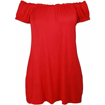 STAR FASHION Semi Sheer Boho Shoulder Off Elasticated Gather Long Gypsy Summer Top Cosplay Strapless Camisole Steampunk Pirate Costume Blouse for Woman (Red)