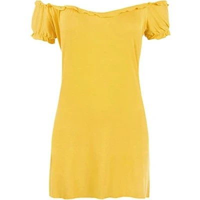 STAR FASHION Semi Sheer Boho Shoulder Off Elasticated Gather Long Gypsy Summer Top Cosplay Strapless Camisole Steampunk Pirate Costume Blouse for Woman (Yellow)