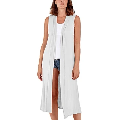 STAR FASHION Woman’s Open Front Sleeveless Maxi Long Length Boyfriend Cardigan Ladies Plain Blazer Waistcoat Floaty Top Duster Jacket UK 16 18 White