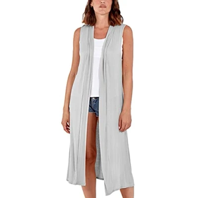 STAR FASHION Woman’s Open Front Sleeveless Maxi Long Length Boyfriend Cardigan Ladies Plain Blazer Waistcoat Floaty Top Duster Jacket UK 20 22 Light Grey