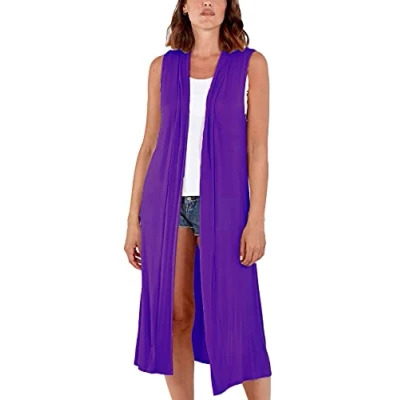 STAR FASHION Woman’s Open Front Sleeveless Maxi Long Length Boyfriend Cardigan Ladies Plain Blazer Waistcoat Floaty Top Duster Jacket UK 20 22 Purple
