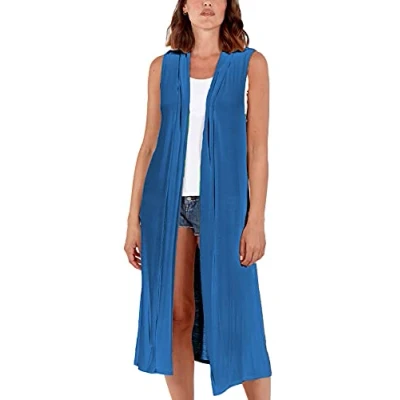 STAR FASHION Woman’s Open Front Sleeveless Maxi Long Length Boyfriend Cardigan Ladies Plain Blazer Waistcoat Floaty Top Duster Jacket UK 24 26 Teal