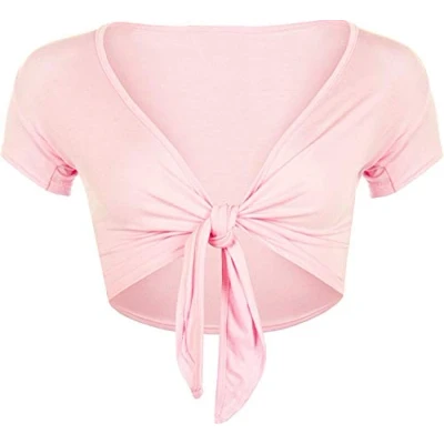 STAR FASHION Women Cap Sleeve Bolero Shrug Tie Up Front Cropped Cardigan Short Sleeves Top Baby Pink UK 8 10