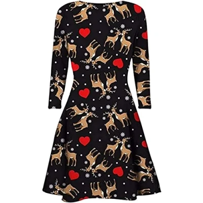 STAR FASHION Women Christmas Party Dress Snowman Swing Novelty Printed Skater Xmas Secret Santa Gift for Ladies Kissing Reindee & Heart 12 14