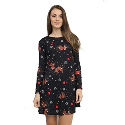 STAR FASHION Women Christmas Party Dress Snowman Swing Novelty Printed Skater Xmas Secret Santa Gift for Ladies Love Rudolph 8 10